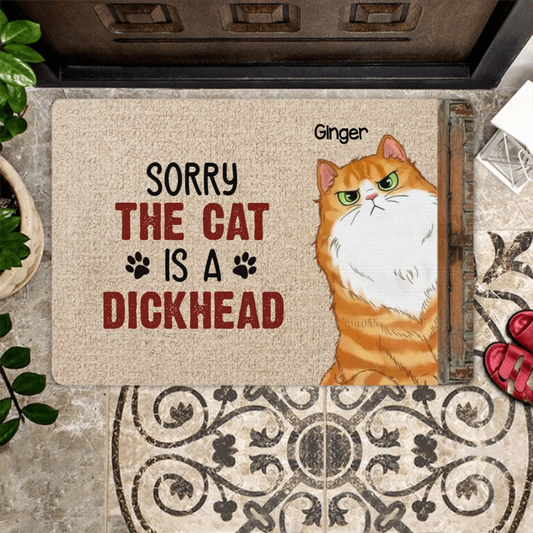 Sorry The Cat Is A Dickhead Personalized Doormat