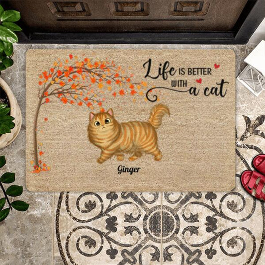 Christmas Life Is Better With Cat Personalized Doormat - Cats and Names can be customized