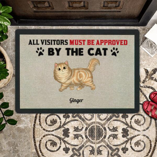 All Visitors Must Be Approved By Cats Personalized Doormat - Cats and Names can be customized