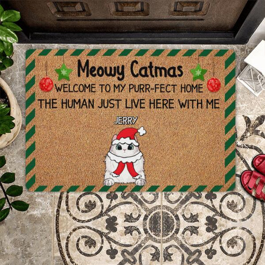 Meowy Catmas Welcome To Our Purr-fect Home Personalized Doormat