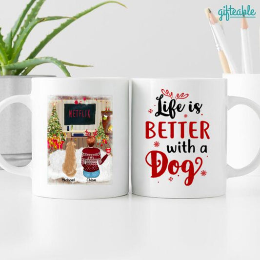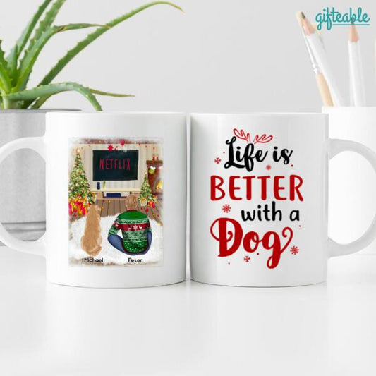 Christmas Man and Dog Personalized Mug - Man, Dogs and Names can be customized