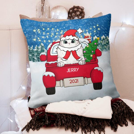 Cat Christmas Red Truck Personalized Pillow Cover - Cats and Names can be customized