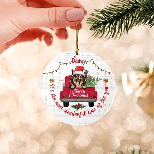 Dog Red Truck Merry Christmas Personalized Ceramic Ornament - Dogs, Names can be customized