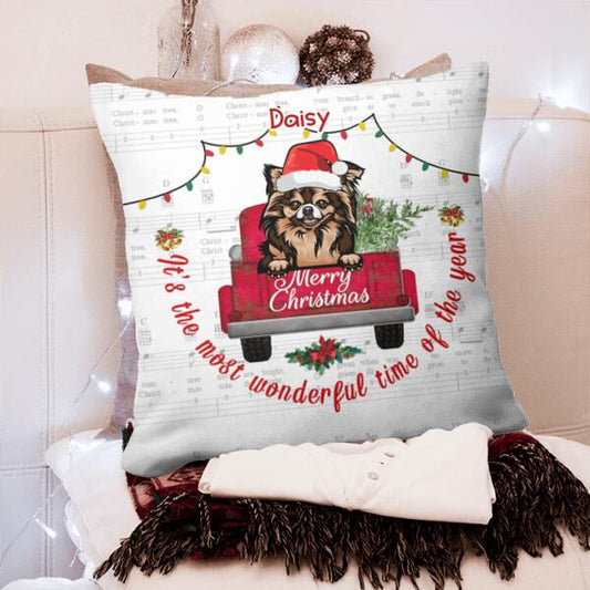Dog Red Truck Merry Christmas Personalized Pillow Cover