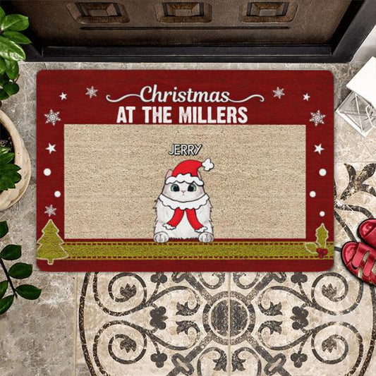 Christmas Family Name Cat Personalized Doormat - Cats, Costumes and Names can be customized