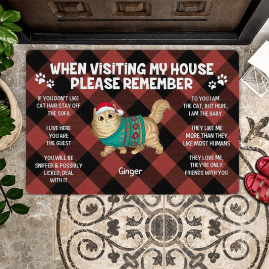 Christmas Remember When Visiting Our House Cats Personalized Doormat