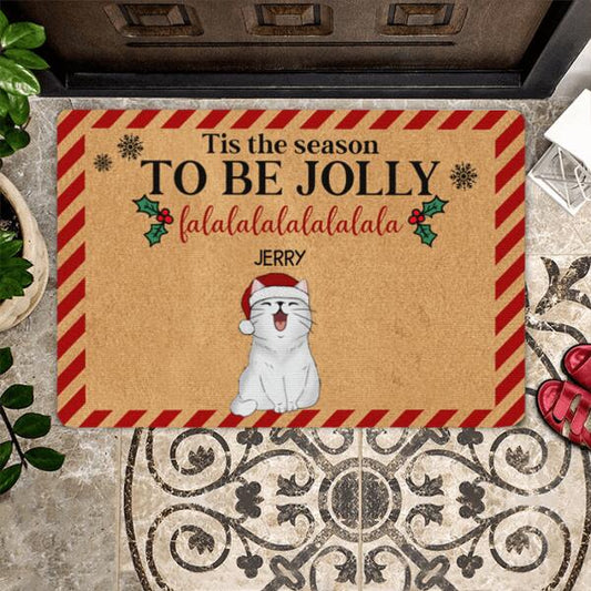 Tis The Season To Be Jolly Cat Personalized Doormat - Cats, Costumes and Names can be customized