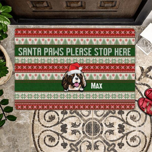 Christmas Dog Ugly Pattern Personalized Doormat - Dogs, Backgrounds and Names can be customized