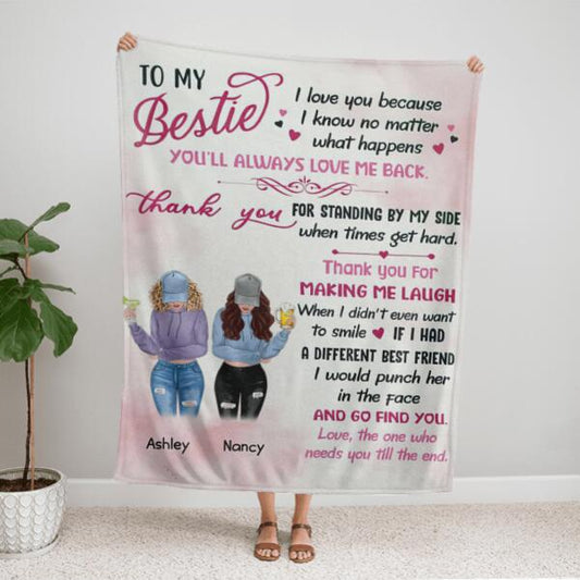 To My Bestie Personalized Flannel Blanket - Girls and Names can be customized