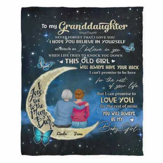 To My Granddaughter Personalized Fleece Blanket - Grandmother, granddaughter, names can be customized