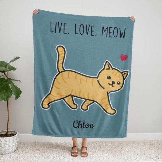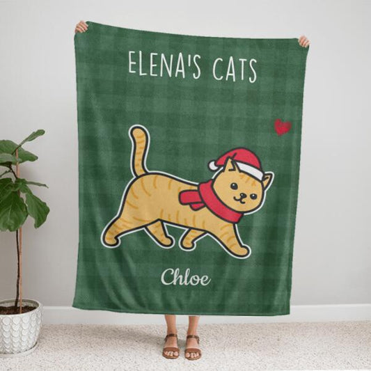Walking Cat Personalized Flannel Blanket - Cats, Name and Text can be customized