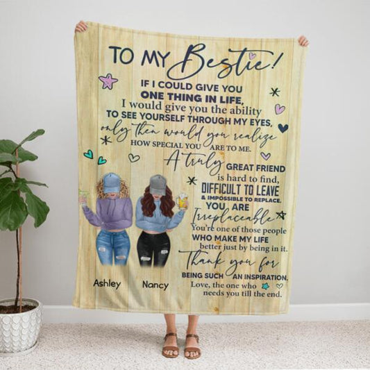 To My Bestie Standing Wood Texture Personalized Fleece Blanket - Girls and Names can be customized