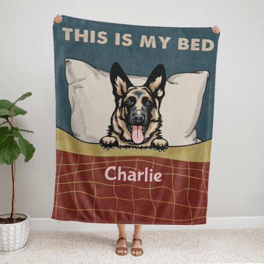 Dog This Is My Bed Personalized Flannel Blanket - Breeds, Number of Dogs, Names can be customized