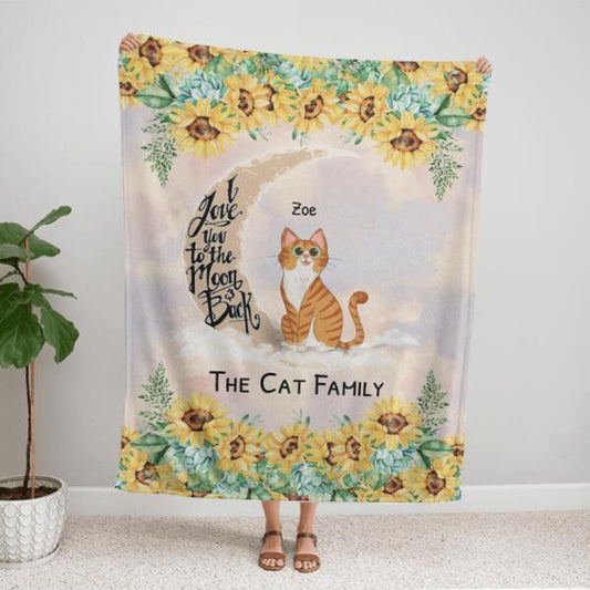 Love Cats To The Moon Sunflower Personalized Flannel Blanket - Cats, Name and Text can be customized