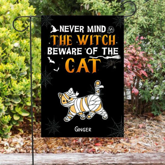 Beware Of The Cat Halloween Personalized Garden Flag - Cats and Names can be customized