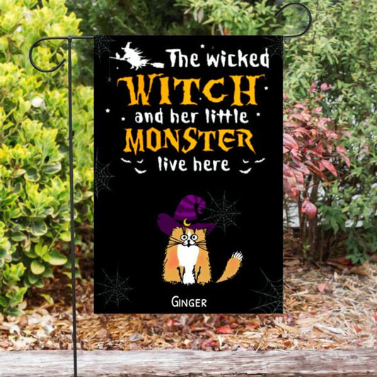 The Wicked Witch And Her Little Cat Monster Live Here Personalized Garden Flag - Cats and Names can be customized