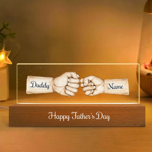 Daddy's Team Fist Bump Personalized LED Night Light (Dog & Cat Included)