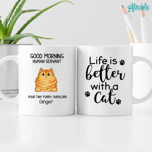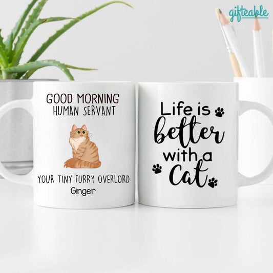 Good Morning Cat Human Servant Personalized Coffee Mug