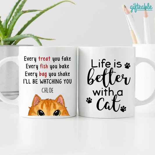 Fluffy Cat Will Be Watching You Personalized Coffee Mug