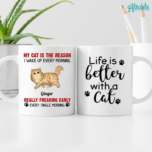 Reason I Wake Up Early Walking Fluffy Cats Personalized Mug